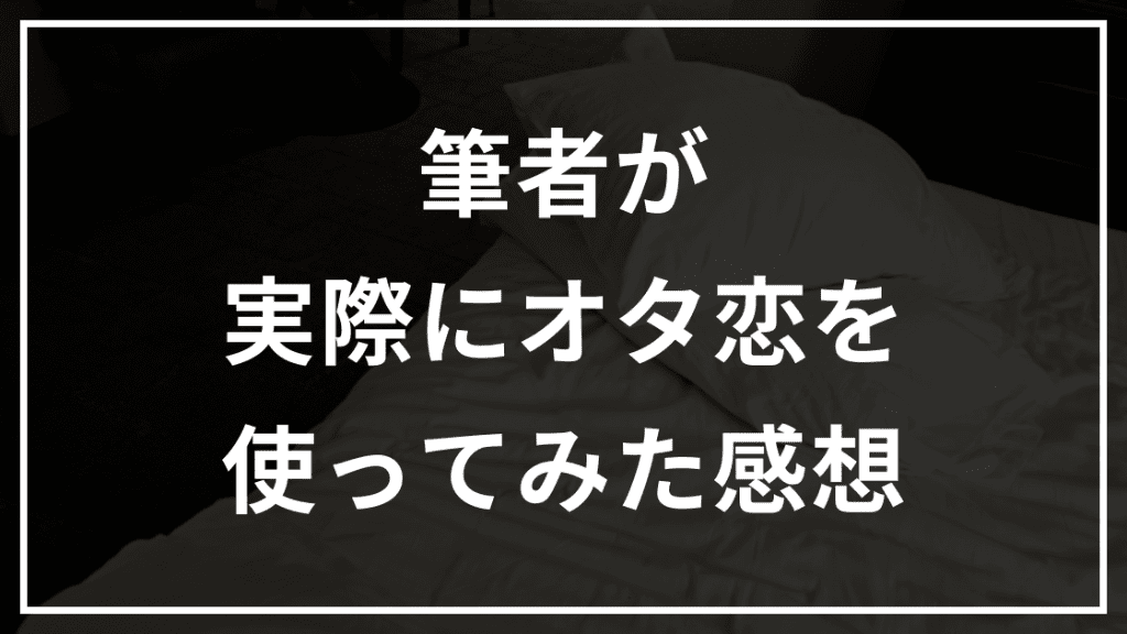 ここからは、筆者(30代前半・男性/アニメ・ゲーム・オタク)が、実際にオタ恋を使ってみた体験談を正直にお届けします。