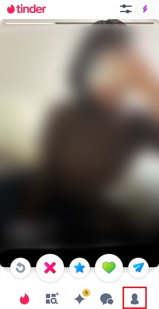 まずはTinderを開いて、トップ画面のアプリ下の右端の人型のマークをタップ!