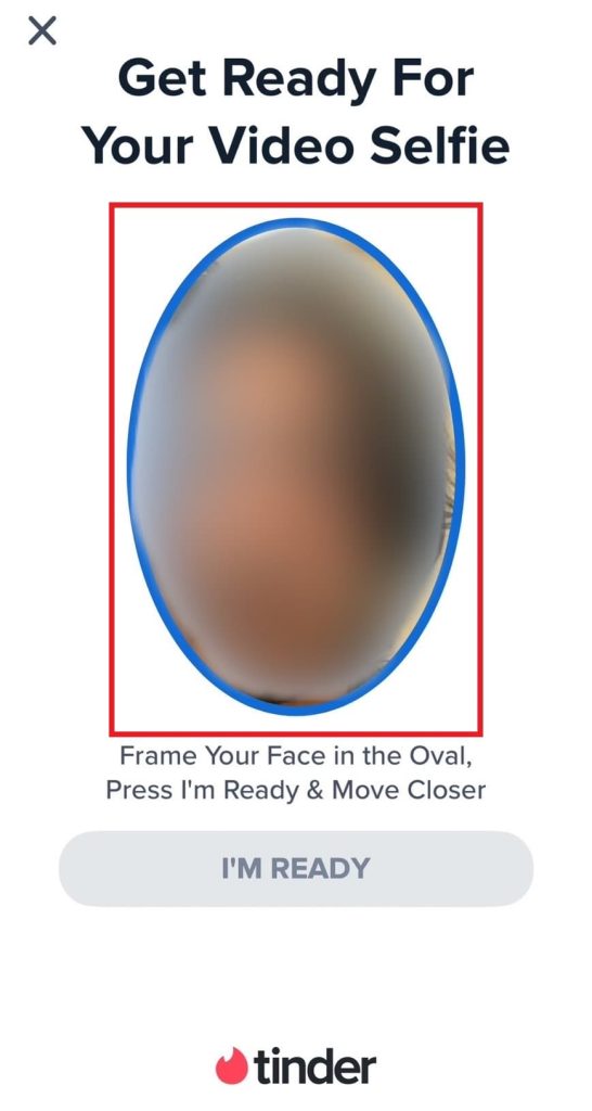 青い枠にインカメラで自分の顔をはめると「I’M READY」の部分が赤くなり、タップするかまたは自動で開始します。
